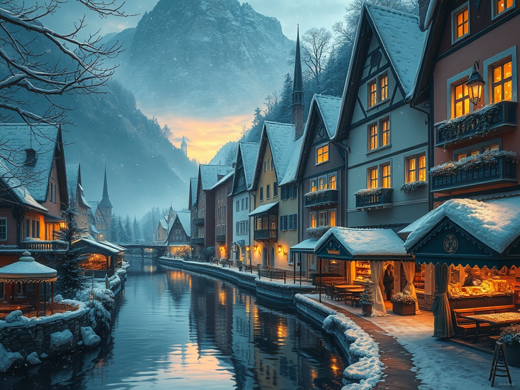 Cradled between mountains and a glass-still lake, Hallstatt looks like a fairytale frozen in time. In winter, its pastel houses dusted with snow mirror perfectly in the icy water — pure serenity.